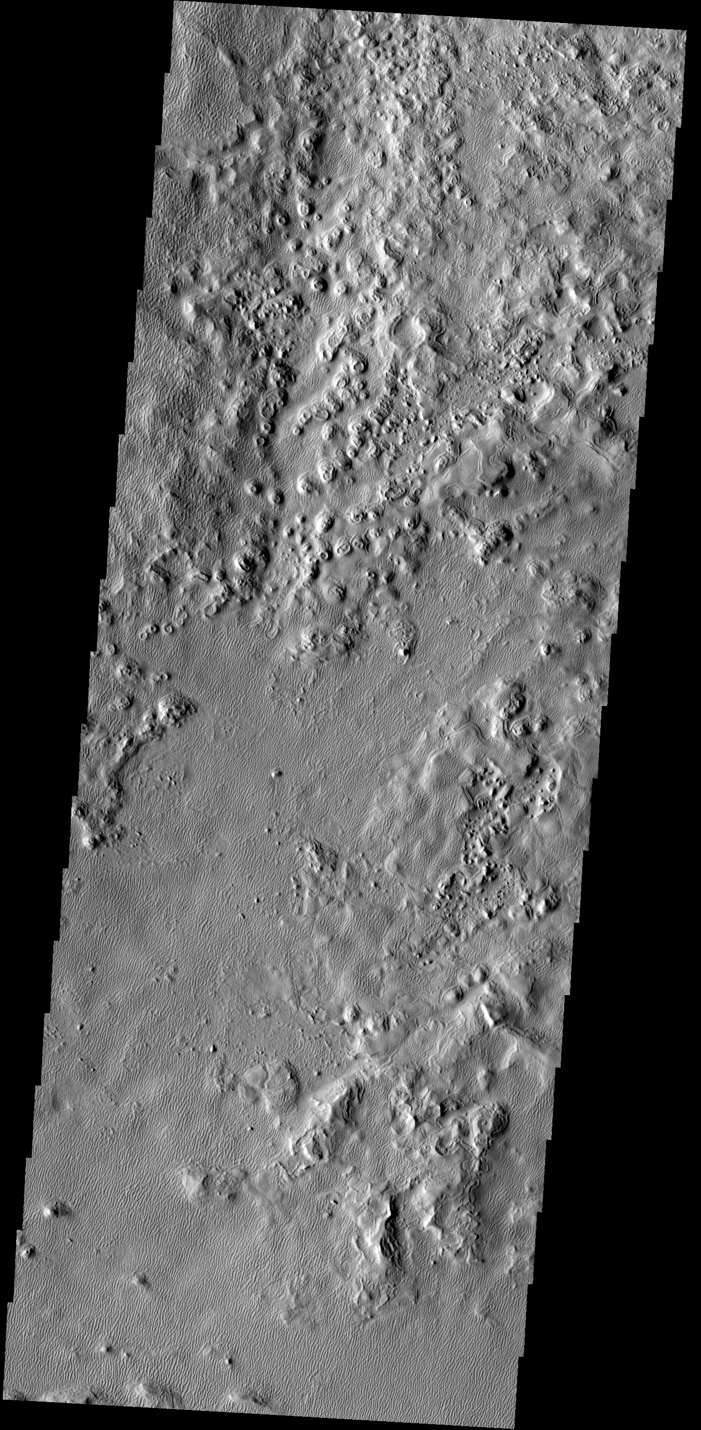 This image of a region east of Acheron Fossae shows an unusual texture - with bumps and old stabilized dunes.