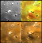 Four views of Euboea Fluctus on Jupiter's moon Io showing changes seen on June 27th, 1996 by the Galileo spacecraft as compared to views seen by the Voyager spacecraft during the 1979 flybys. Clockwise from upper left is a Voyager 1 high resolution image, a Galileo enhanced color image, a Galileo image with simulated Voyager colors, and a Voyager 2 color image. North is to the top of the picture. The Galileo images show new diffuse deposits which have an unusual morphology for plume deposits. A diffuse yellowish deposit with a radius of 285 km extends to the northwest, whereas an intense reddish deposit marks a curving fallout margin to the southeast. This morphology may have resulted from the presence of a topographic obstruction to southeast of the vent. The Jet Propulsion Laboratory, Pasadena, CA manages the mission for NASA's Office of Space Science, Washington, DC. This image and other images and data received from Galileo are posted on the World Wide Web, on the Galileo mission home page at URL http://galileo.jpl.nasa.gov. Background information and educational context for the images can be found at http://www.jpl.nasa.gov/galileo/sepo.