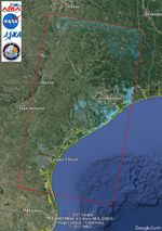 The Advanced Rapid Imaging and Analysis (ARIA) team at NASA's Jet Propulsion Laboratory in Pasadena, California, used synthetic aperture radar imagery from the Japan Aerospace Exploration Agency's (JAXA) ALOS-2 satellite to create this Flood Proxy Map depicting areas of Southeastern Texas that are likely flooded as a result of Hurricane Harvey (shown by light blue pixels). The map is derived images taken before (July 30, 2017) and after (Aug. 27, 2017) Hurricane Harvey made landfall. The map covers an area of 220 by 400 miles (350 by 640 kilometers). Each pixel measures about 55 yards (50 meters) across. Local ground observations provided anecdotal preliminary validation. The results are also cross-validated with ARIA Sentinel-1 flood proxy map v0.2. The map should be used as guidance, and may be less reliable over urban areas. ALOS-2 data were accessed through the International Charter.