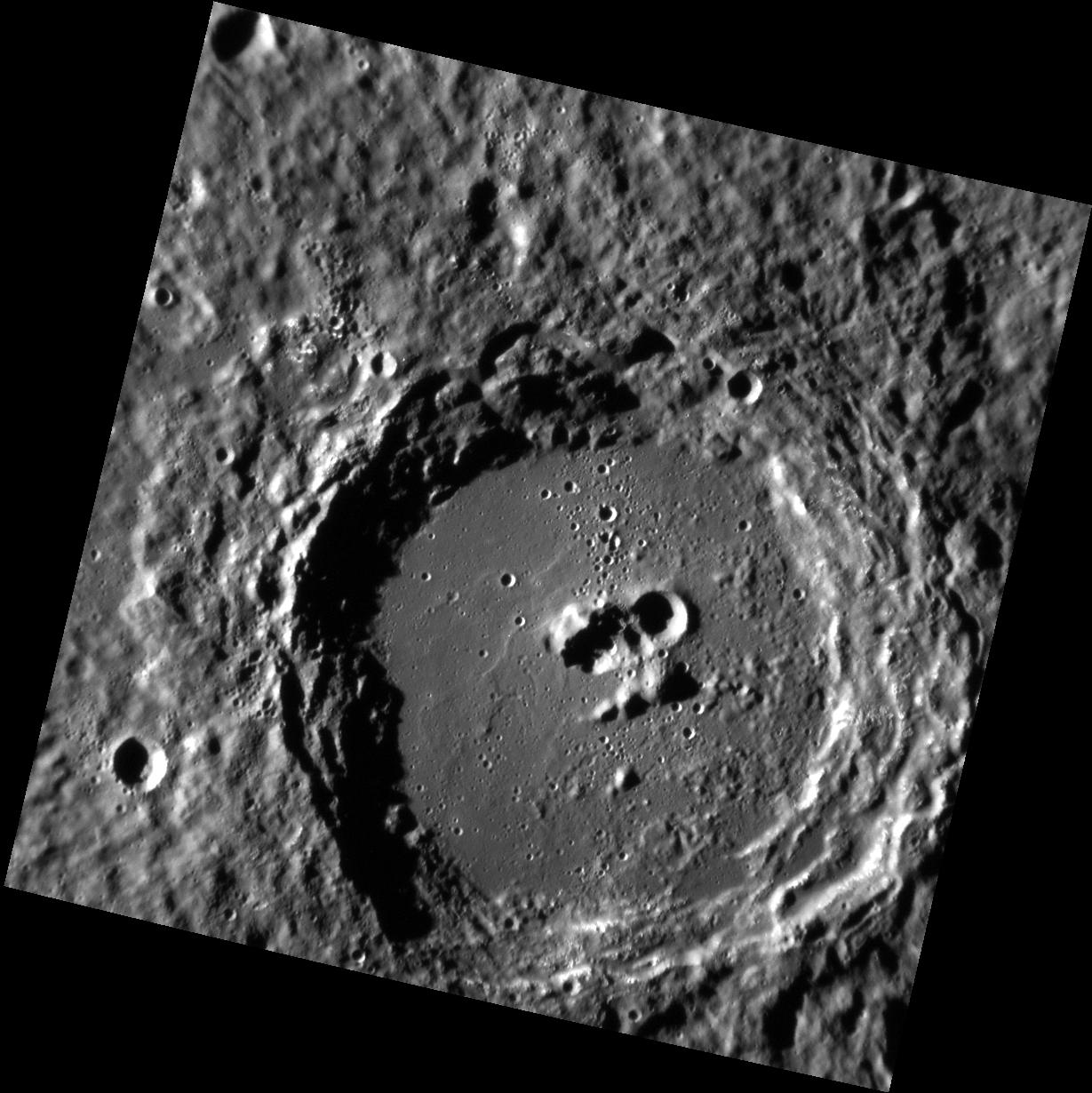 Today's image features Neruda crater, named for the Chilean poet Pablo Neruda. The crater exhibits several central peaks punctuated by a more recent, small crater, resulting in a rugged profile of ups and downs if one were to traverse the crater floor. Similarly, the crater's namesake Neruda experienced a number of ups and downs in his life, from success as a poet, through poverty, war and ultimately alleged poisoning.