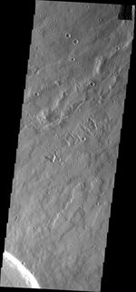 Note: this THEMIS visual image has not been radiometrically nor geometrically calibrated for this preliminary release. An empirical correction has been performed to remove instrumental effects. A linear shift has been applied in the cross-track and down-track direction to approximate spacecraft and planetary motion. Fully calibrated and geometrically projected images will be released through the Planetary Data System in accordance with Project policies at a later time.