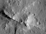 NASA's Dawn spacecraft captured this close-up view of the central peak of the 99-mile-wide (160-kilometer-wide) Urvara impact crater on Ceres. The 6,500-foot (1980-meter) central ridge rises above the nearby terrain.