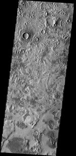 Note: this THEMIS visual image has not been radiometrically nor geometrically calibrated for this preliminary release. An empirical correction has been performed to remove instrumental effects. A linear shift has been applied in the cross-track and down-track direction to approximate spacecraft and planetary motion. Fully calibrated and geometrically projected images will be released through the Planetary Data System in accordance with Project policies at a later time.