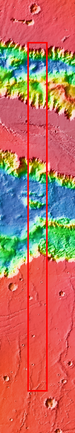 This daytime IR image transects Candor Chasma and Melas Chasma. Many canyon features are clearly visible in the image, including the steep cliff faces, landslides, and layered canyon floor deposits.