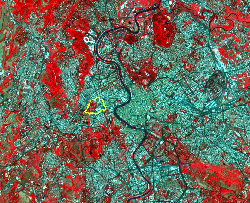 The Vatican City State is a sovereign city-state, whose area is a 44 hectare walled enclave west of the Tiber River, within the city of Rome. With a population of about 850, it is the smallest independent state in the world by both area and population. The independent city-state was established in 1929 by King Victor Emanuelle III of Italy. Vatican City is an ecclesiastical state ruled by the Bishop of Rome -- the Pope. The image was acquired July 4, 2010, covers an area of 10 by 13 km, and is located at 41.9 north, 12.5 east.