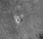 The Magellan spacecraft has observed remnant landslide deposits apparently resulting from the collapse of volcanic structures. This Magellan radar image is centered about 25.4 degrees south latitude and 308 degrees east longitude in the southwestern Navka Region of Venus. The image shows a 17.4 kilometer (10.8 mile) diameter volcanic dome on the plains. The dome is approximately 1.86 kilometers (1.2 mile) in height and it has a slope of about 23 degrees. The northwest and northeast flanks of the dome have collapsed to form landslides that have deposited debris on the plains. The image shows an area 110 kilometers (68 miles) across and 100 kilometers (62 miles) in length.