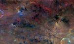 The composite image was created by assigning ratios of color information collected from several color filters in visible light and near-infrared light to maximize subtle differences in lithology (the physical characteristics of rock units, such as color, texture and composition). The color scheme pays special attention to the iron-rich mineral pyroxene.