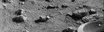 Viking 2's first picture on the surface of Mars was taken within minutes after the spacecraft touched down on September 3. The scene reveals a wide variety of rocks littering a surface of fine-grained deposit. Boulders in the 10 to 20-centimeter (4 to 8-inch) size range-- some vesicular (holes) and some apparently fluted by wind--are common. Many of the pebbles have tabular or platy shapes, suggesting that they may be derived from layered strata. The fluted boulder just above the Lander s footpad displays a dust-covered or scraped surface, suggesting it was overturned or altered by the foot at touchdown. Just as occurred with Viking l s first picture on July 20, brightness variations at the beginning of the picture scan (left edge) probably are due to dust settling after landing. A substantial amount of fine-grained material kicked up by the descent engines has accumulated in the concave interior of the footpad. Center of the image is about 1.4 meters (5 feet) from the camera. Field of view extends 70 from left to right and 20 from top to bottom. Viking 2 landed at a region called Utopia in the northern latitudes about 7500 kilometers (4600 miles) northeast of Viking l s landing on the Chryse plain 45 days earlier.