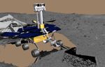 This image taken by the panoramic camera on the Mars Exploration Rover Spirit highlights the first patch of soil examined by the rover's microscopic imager. The imager is located on the rover's instrument deployment device, or "arm." The rover can be seen to the right. Engineers first deployed the arm early Friday morning, Jan. 16, 2004.