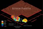This illustration schematically shows where the Shallow Radar instrument on NASA's Mars Reconnaissance Orbiter detected flood channels that had been buried by lava flows in the Elysium Planitia region of Mars.