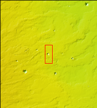 This VIS image shows a small portion of the extensive lava flows of the Tharsis volcanic region. Note that the flows have encircled the two craters, covering the ejecta deposits, but not breaching/over running the crater rim.