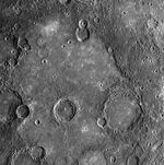 This WAC image shows a close-up view of the crater Rudaki, named for the Persian poet of the late 800s and early 900s. On the floor of Rudaki and also in a broad region surrounding Rudaki to the west are smooth plains, which are far less cratered than the neighboring terrain (except for the small secondary craters from the large, fresh crater to the west of Rudaki). Detailed studies of Mariner 10 images led to the conclusion that these plains near Rudaki were formed by volcanic flows on the surface of Mercury. This image from MESSENGER’s second flyby of Mercury shows some nice examples of craters in the plains that appear to have been significantly flooded with lava, leaving only their circular rims preserved. This WAC image is one of five scenes in a high-resolution color mosaic obtained just after MESSENGER’s closest approach to Mercury. Three of the other scenes have already been released: the first image after closest approach (see PIA11352), a frame showing the craters Polygnotus and Boethius, (see PIA11246), and a view of Thakur crater. As was done to create the color composite images of Thakur crater (see PIA11365), images acquired in all 11 of the WAC’s narrow-band color filters are being used to study the volcanic plains around Rudaki in more detail than was possible from the limited color data of the Mariner 10 mission.