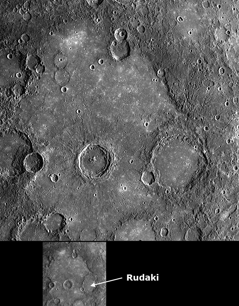 Scale: Rudaki crater has a diameter of 120 kilometers (75 miles)