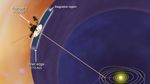 NASA's Voyager 1 spacecraft has entered a new region between our solar system and interstellar space, which scientists are calling the stagnation region. In the stagnation region, the wind of charged particles streaming out from our sun has slowed and turned inward for the first time, our solar system's magnetic field has piled up and higher-energy particles from inside our solar system appear to be leaking out into interstellar space. This image shows that the inner edge of the stagnation region is located about 113 astronomical units (10.5 billion miles or 16.9 billion kilometers) from the sun. Voyager 1 is currently about 119 astronomical units (11 billion miles or 17.8 billion kilometers) from the sun. The distance to the outer edge is unknown.