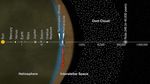 This artist's concept puts solar system distances -- and the travels of NASA's Voyager 2 spacecraft -- in perspective. The scale bar is in astronomical units, with each set distance beyond 1 AU representing 10 times the previous distance. One AU is the distance from the Sun to Earth, which is about 93 million miles, or 150 million kilometers. Neptune, the most distant planet from the Sun, is about 30 AU.