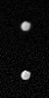 Voyager 2 took this photo sequence of Saturn's outer satellite, Phoebe, on Sept. 4, 1981, from 2.2 million kilometers (1.36 million miles) away. The top image is the normal version and the bottom is an enhanced version to increase resolution. This sequence lasts 23.4 hours and contains 35 images. The early images were taken about 43 minutes apart, while the later ones are about 29 minutes apart. There are two significant gaps in the sequence: images 7 and 8 are separated by 2.3 hours and images 19 and 20 are separated by 2.8 hours.