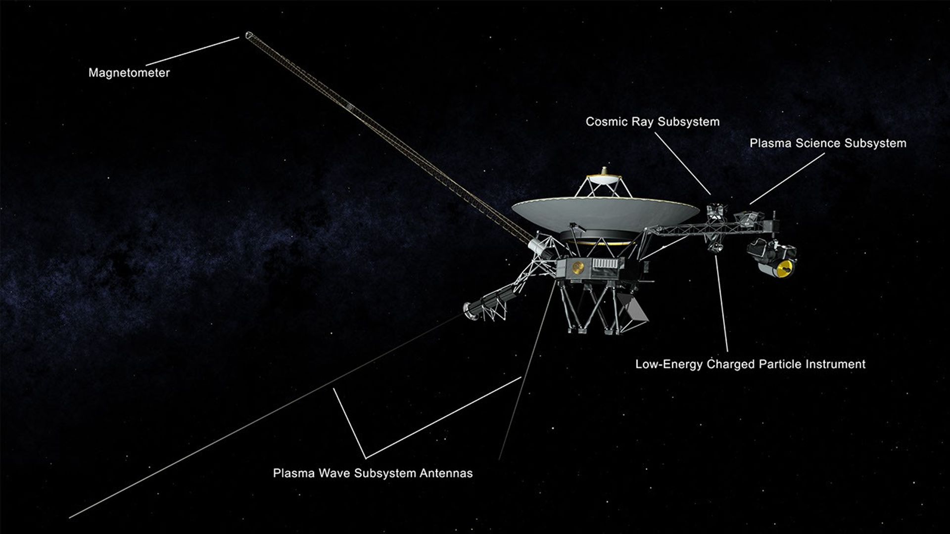 This illustration of NASA's Voyager 2 spacecraft shows the location of the onboard science instruments that are still operating: the magnetometer, the cosmic ray subsystem, the plasma science experiment, the low-energy charged particle instrument and the antennas used by the plasma wave subsystem.