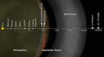 This artist's concept puts solar system distances in perspective. The scale bar is in astronomical units, with each set distance beyond 1 AU representing 10 times the previous distance. One AU is the distance from the sun to the Earth, which is about 93 million miles or 150 million kilometers. Neptune, the most distant planet from the sun, is about 30 AU.