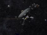This artist's concept shows NASA's Voyager spacecraft against a field of stars in the darkness of space. The two Voyager spacecraft are traveling farther and farther away from Earth, on a journey to interstellar space, and will eventually circle around the center of the Milky Way galaxy.