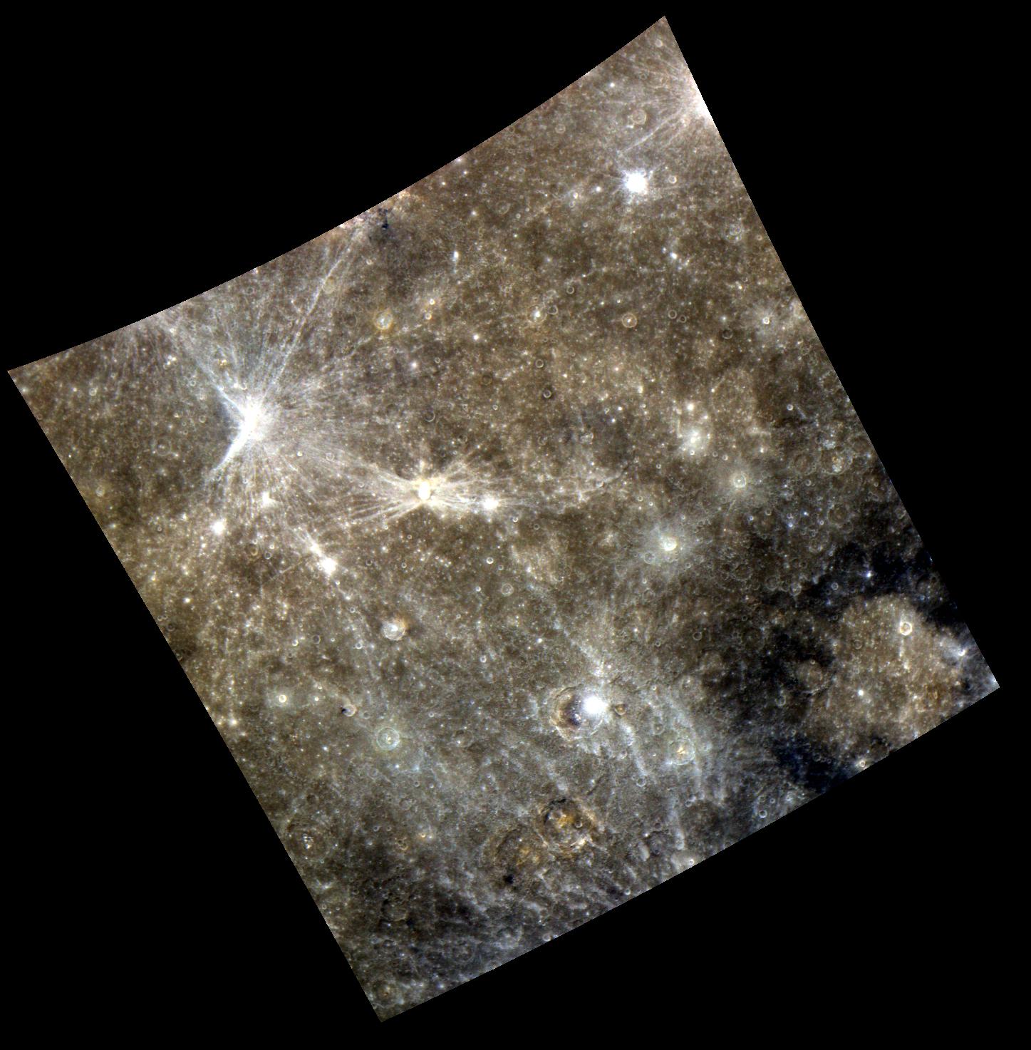 This image was acquired as part of MDIS's color base map. The color base map is composed of WAC images taken through eight different narrow-band color filters and will cover more than 90% of Mercury's surface with an average resolution of 1 kilometer/pixel (0.6 miles/pixel). The highest-quality color images are obtained for Mercury's surface when both the spacecraft and the Sun are overhead, so these images typically are taken with viewing conditions of low incidence and emission angles.