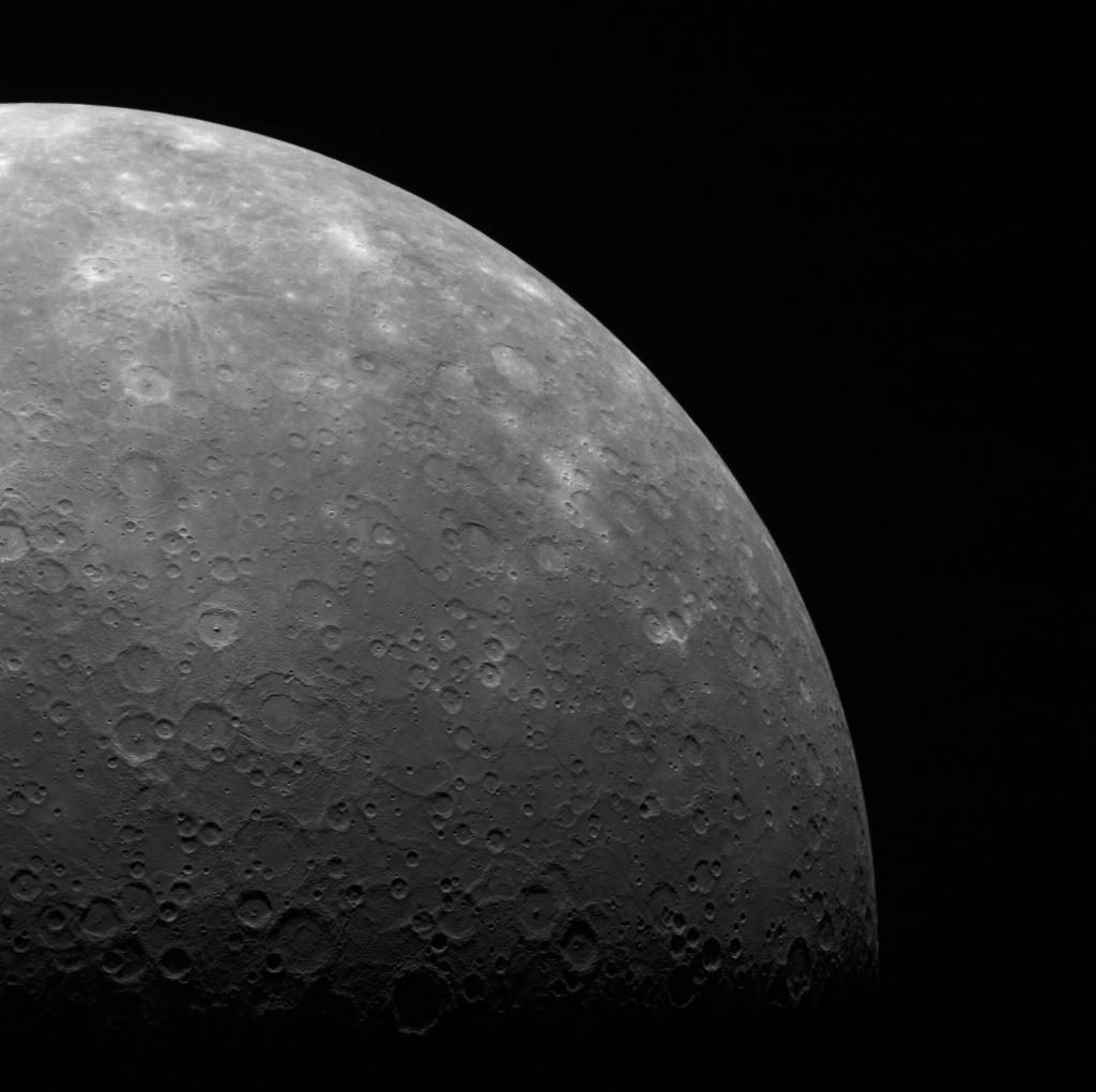 Once per week, MDIS captures images of Mercury's limb (the edge of the sunlit planet with space), with an emphasis on imaging the southern hemisphere limb. An example of one of those limb images is shown here. The spacecraft was high above Mercury's south polar region when capturing this image. However, even when the spacecraft is at its highest altitude above Mercury, a single WAC image cannot capture the entire limb of Mercury. Consequently, two images are taken and mosaicked together to image Mercury's entire limb. These limb images will provide information about Mercury's shape and will complement measurements of topography made by the Mercury Laser Altimeter (MLA) of Mercury's northern hemisphere. Read about MDIS's other imaging campaigns in this featured story.