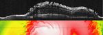 This image (top) taken by the Shallow Radar instrument on NASA's Mars Reconnaissance Orbiter reveals the layers of ice, sand and dust that make up the north polar ice cap on Mars. It is the most detailed look to date at the insides of this ice cap. The colored map below the radar picture shows the topography of the corresponding Martian terrain (red and white represent higher ground, and green and yellow lower).