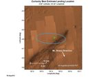 The green diamond shows approximately where NASA's Curiosity rover landed on Mars, a region about 2 kilometers northeast of its target in the center of the estimated landing region (blue ellipse). The location of the diamond is based on Earth-based navigation data taken prior to Curiosity's entry into the Martian atmosphere, as well as data taken by the rover's navigation instruments during descent.