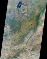 The Bangweulu swamps are part of a large complex of major lakes, and the Chambeshi and Luapula as major rivers. One of the most rare and elusive birds in Africa, the shoebill stork (Balaeniceps rex) favors the Bangweulu swamps as one of their last remaining habitats. The rainy season in Zambia is from November to April, so when this image was captured (July) several months had elapsed since the onset of the dry season. Unique to the floodplains of the Bangweulu swamps is the water-loving black lechwe (a semi-aquatic antelope). There are also sitatunga (another antelope adapted to wetland areas) and hippos. Bangweulu is an open access fishery, but with a number of fishing restrictions, and a prohibition against industrial fishing.