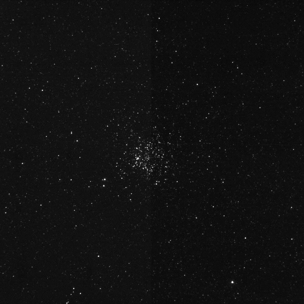 On April 7, 2005, the Deep Impact spacecraft's Impactor Target Sensor camera recorded this image of M11, the Wild Duck cluster, a galactic open cluster located 6 thousand light years away. The camera is located on the impactor spacecraft, which will image comet Tempel 1 beginning 22 hours before impact until about 2 seconds before impact. Impact with comet Tempel 1 is planned for July 4, 2005.