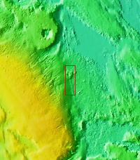 The ejecta materials of this crater are more resistant to erosion than the surrounding materials. The wind has eroded pits and other features around the crater, but the crater has become a topographic high, due to the rock created in the impact event.