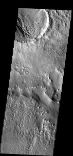 Note: this THEMIS visual image has not been radiometrically nor geometrically calibrated for this preliminary release. An empirical correction has been performed to remove instrumental effects. A linear shift has been applied in the cross-track and down-track direction to approximate spacecraft and planetary motion. Fully calibrated and geometrically projected images will be released through the Planetary Data System in accordance with Project policies at a later time.
