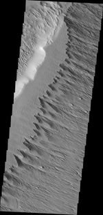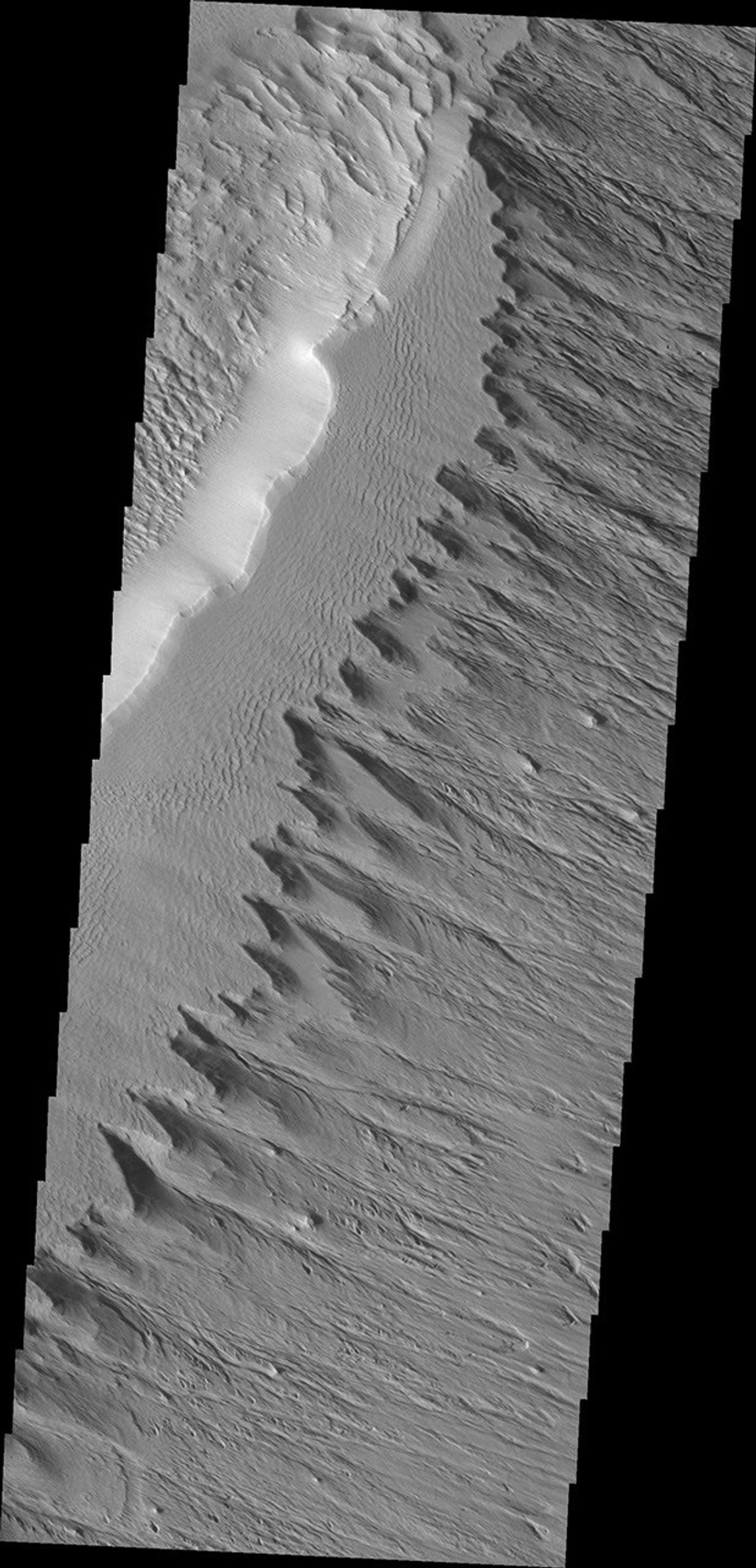 This ridge of material on the northern end of Gordii Dorsum is being reduced in size by the erosive effect of the wind.