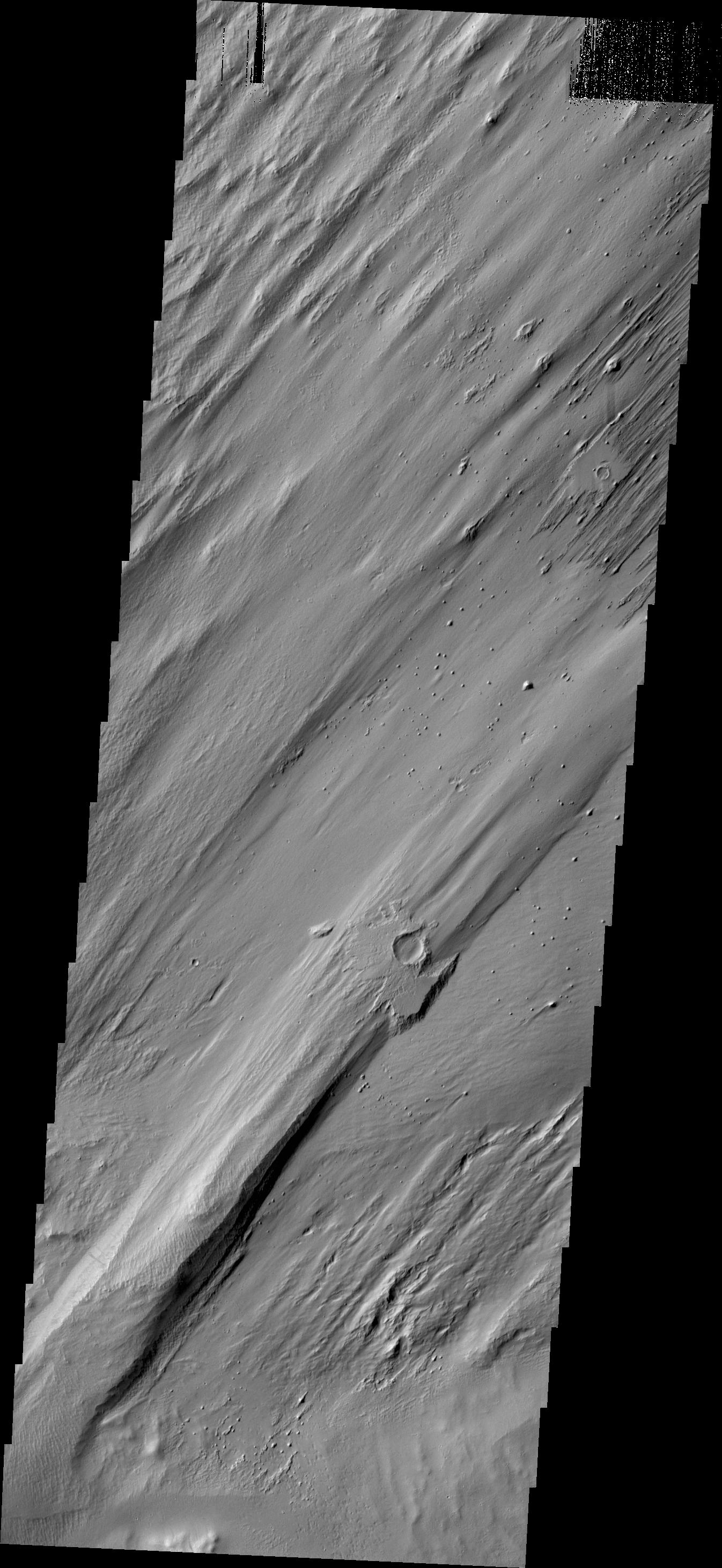 When a large impact occurs it vaporizes the surface and deposits hot debris around the newly formed crater. That change of the surface by an impact is beautifully illustrated here, where the crater and ejecta are more resistant to the power of the wind. Note the other smaller craters near top of the image. This image is located on the northern flank of Apollinaris Mons.