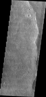 Winds have scoured this region of Elysium Planitia, sculpting the surface into the small parallel hills seen in this VIS image.