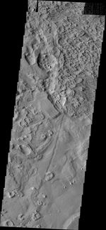 This region on the north end of Gordii Dorsum has an odd texture. Wind is main source of erosion in this region, so the unusual texture may indicate that the surface material in this region is different from nearby regions.