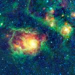 This colorful picture is a mosaic of the Lagoon nebula taken by NASA's Wide-field Infrared Survey Explorer, or WISE. Normally, you would expect a lagoon to be filled with water, but this nebula is composed of clouds of gas and dust in which new stars are forming. Also known as Messier 8, or simply M8, the Lagoon nebula is seen here as a large circular cloud in the center of the image, surrounded by innumerable stars.