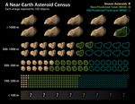 This chart shows how data from NASA's Wide-field Infrared Survey Explorer, or WISE, has led to revisions in the estimated population of near-Earth asteroids. The infrared-sensing telescope performed the most accurate survey to date of a slice of this population as part of project called NEOWISE. This allowed the science team to make new estimates of the total numbers of the objects in different size categories. NEOWISE observed more than 500 objects larger than 100-meters (330-feet) wide -- what can be thought of as medium to large-size asteroids. Near-Earth asteroids smaller than this size range were not studied, and near-Earth comets will be analyzed at a later time. Asteroid sizes are not drawn to scale in the chart.