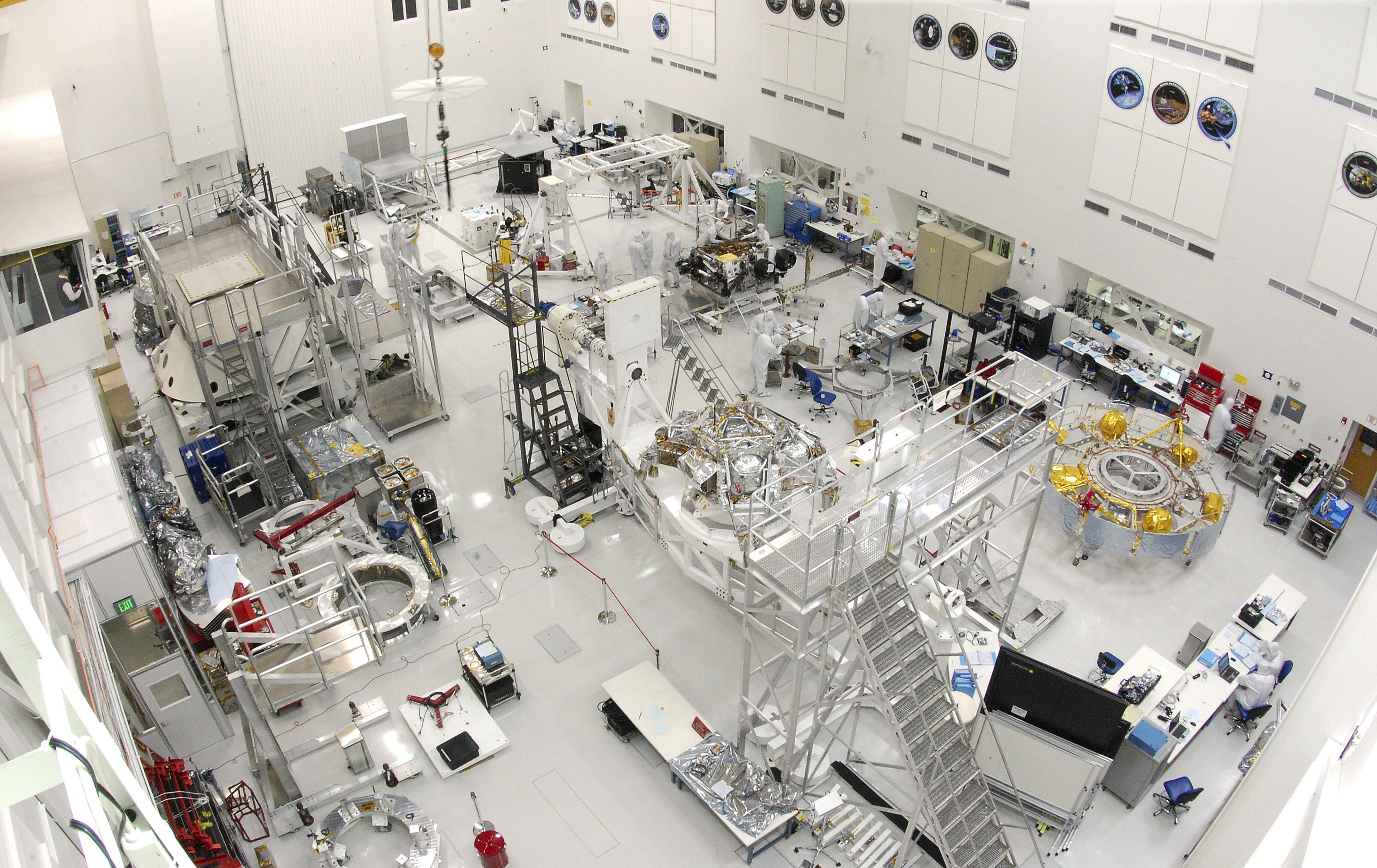 This wide-angle view shows the High Bay 1 cleanroom inside the Spacecraft Assembly Facility at NASA's Jet Propulsion Laboratory, Pasadena, Calif. Specialists are working on components of the Mars Science Laboratory spacecraft in this image from January 2011.