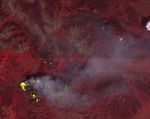 The Lava Mountain fire in Wyoming had grown to more than 10,000 acres when the Advanced Spaceborne Thermal Emission and Reflection Radiometer (ASTER) instrument on NASA's Terra spacecraft captured this image on July 27, 2016. Several small towns have been evacuated in case the fire spreads eastward. ASTER's thermal infrared band shows the active fire hotspots in yellow. The image covers an area of 20.9 by 23.2 miles (33.6 by 37.3 kilometers) and is located at 43.3 degrees north, 110.4 degrees west.