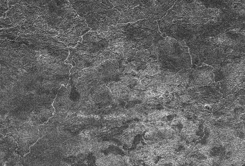 A network of river channels is located atop Xanadu, the continent-sized region on Saturn's moon Titan. This radar image was captured by the Cassini Radar Mapper on April 30, 2006.