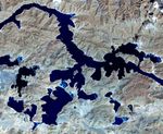 Yamzho Yumco (Sacred Swan) Lake in Tibet is surrounded by snow-capped mountains and is one of the three largest sacred lakes. It is highly crenellated with many bays and inlets. The lake is home to Samding Monastery, headed by a female re-incarnation (Wikipedia). The image was acquired March 6, 2014, covers an area of 49.8 by 60 km, and is centered at 28.9 degrees north, 90.6 degrees east.