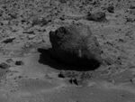 "Yogi," a rock taller than rover Sojourner, is the subject of this image, taken by the deployed Imager for Mars Pathfinder (IMP) on Sol 3. The soil in the foreground will be the location of multiple soil mechanics experiments performed by Sojourner's cleated wheels. Pathfinder scientists will be able to control the force inflicted on the soil beneath the rover's wheels, giving them insight into the soil's mechanical properties.