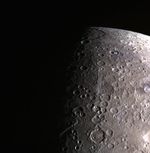 Today's color image features both Mercury's terminator and limb. The terminator is the striking separation of night and day on Mercury. It is seen in this image with the change from dark, on the left of the image, to light. Mercury's limb is also captured, as we can see the edge between sunlit Mercury and space.