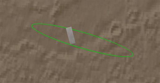 The first shot shows the spacecraft's landing ellipse in green, the area where Phoenix has a high probability of landing. It then zooms in to show the region's arctic terrain. This polar landscape is relatively free of rocks, with only about 1 to 2 rocks 1.5 meters (4.9 feet) or larger in an area about as big as two football fields.