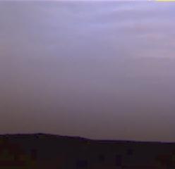 These clouds from Sol 15 have a new look. As water ice clouds cover the sky, the sky takes on a more bluish cast. This is because small particles (perhaps a tenth the size of the martian dust, or one-thousandth the thickness of a human hair) are bright in blue light, but almost invisible in red light. Thus, scientists expect that the ice particles in the clouds are very small. The clouds were imaged by the Imager for Mars Pathfinder (IMP).