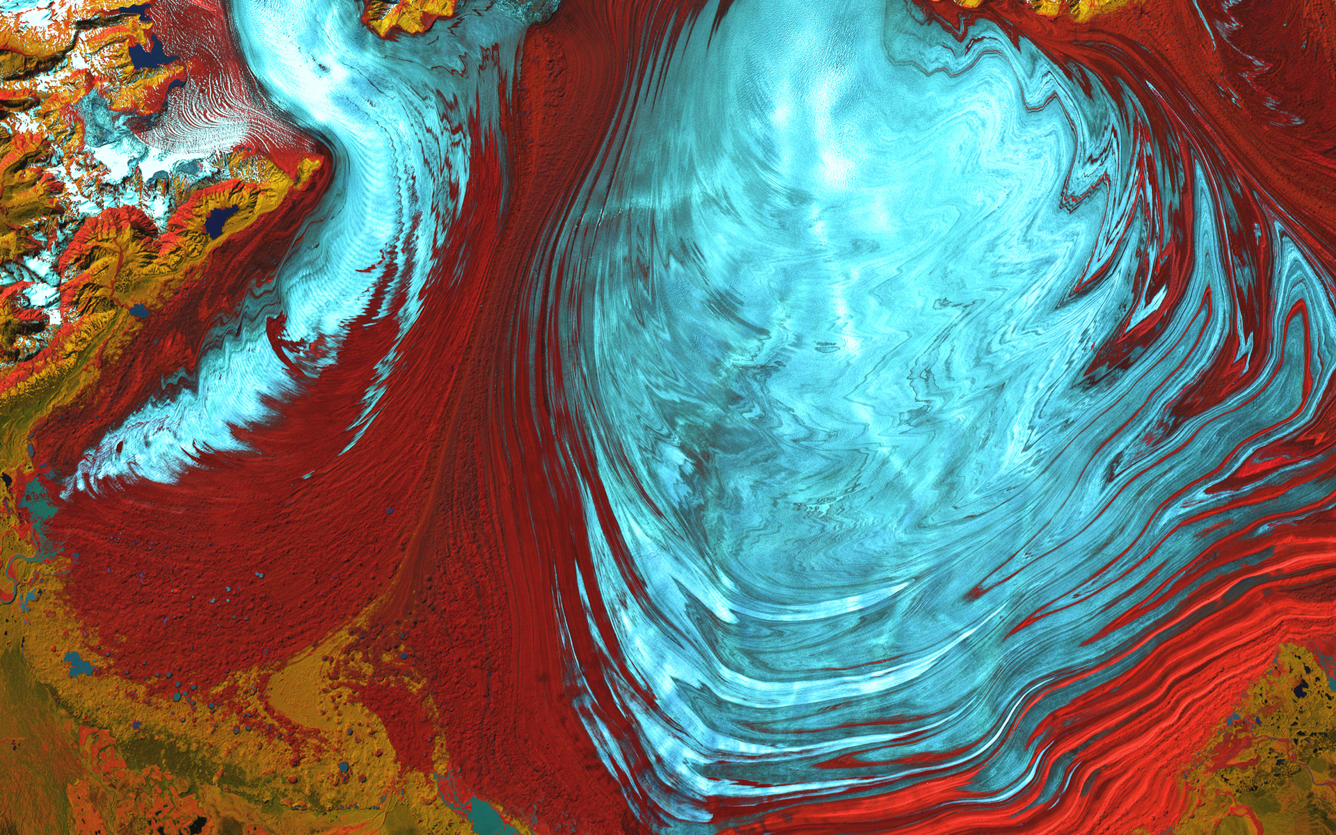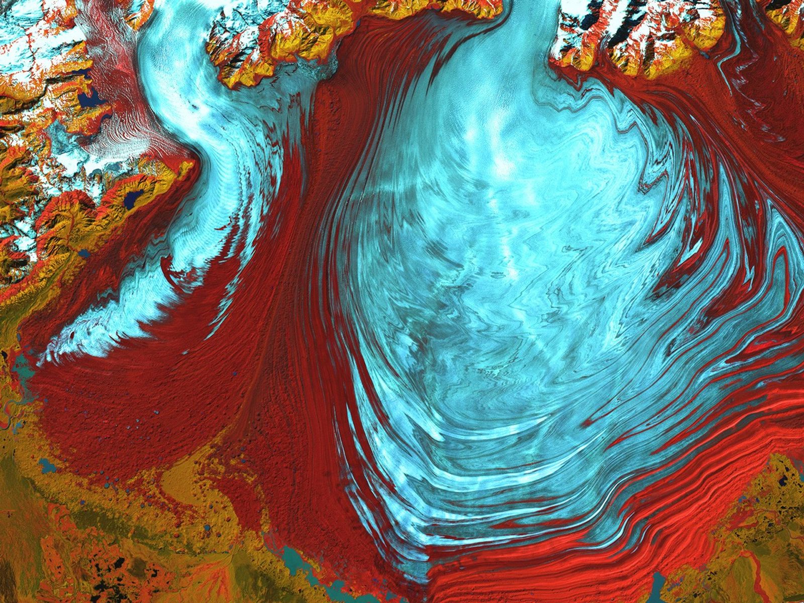 | Credit | Image and caption courtesy of the Our Earth as Art gallery. Credit: USGS/NASA/Landsat 7. |