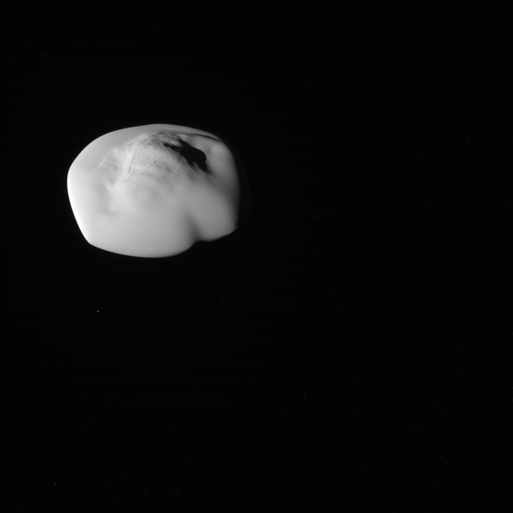 These images are the closest ever taken of Atlas and will help to characterize its shape and geology. Atlas (19 miles, or 30 kilometers across) orbits Saturn just outside the A ring -- the outermost of the planet's bright, main rings.