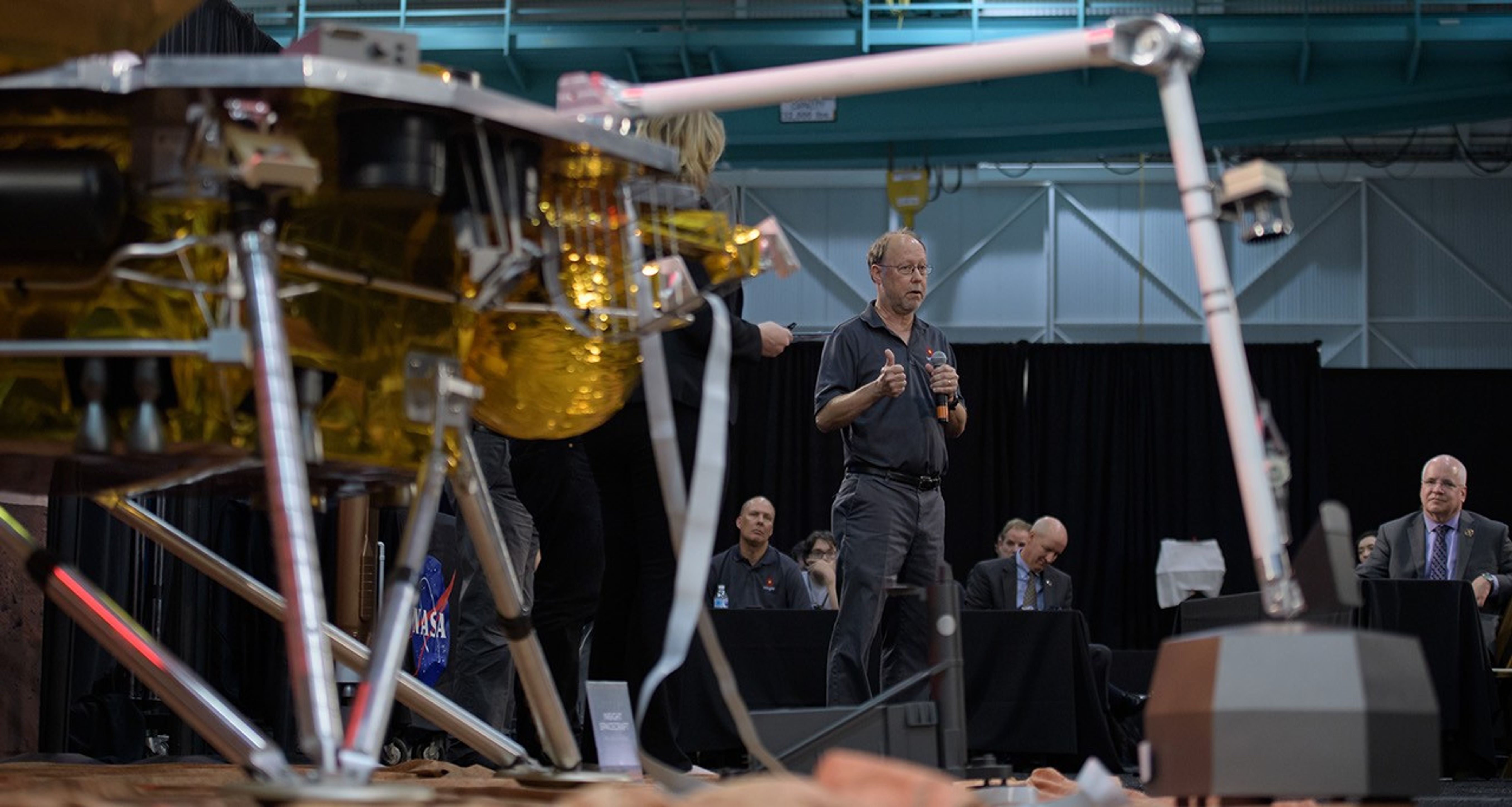 Bruce Banerdt, InSight principal investigator, NASA JPL, discusses NASA's InSight mission during a prelaunch media briefing, Thursday, May 3, 2018, at Vandenberg Air Force Base in California.
