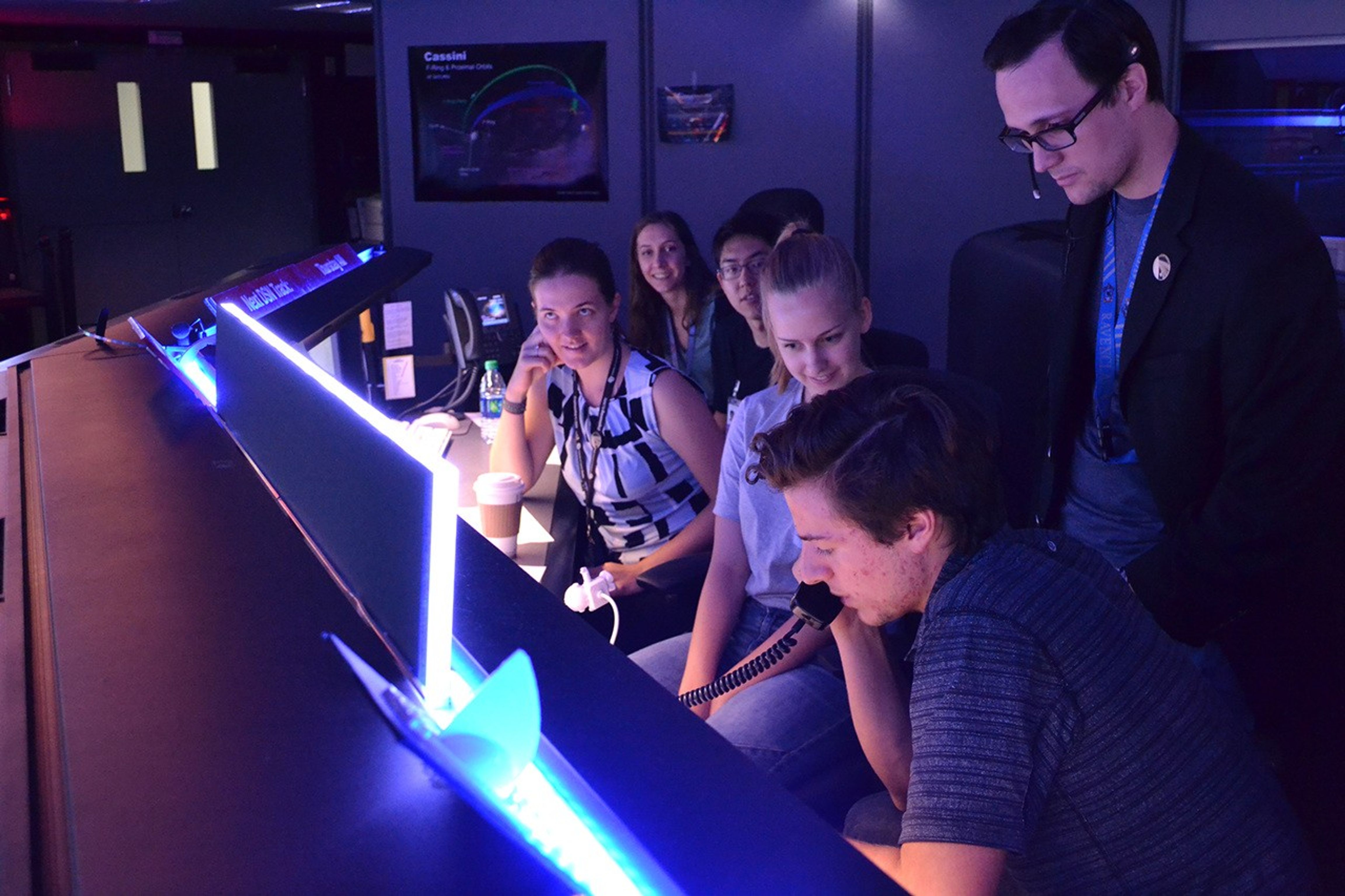 In addition to being mentored in their respective fields and doing real work to support the mission, the interns also get to taste a variety of other roles. On July 13, the five students helping Cassini for Summer 2017 joined Cassini engineer Michael Staab in JPL mission control for a rare treat.