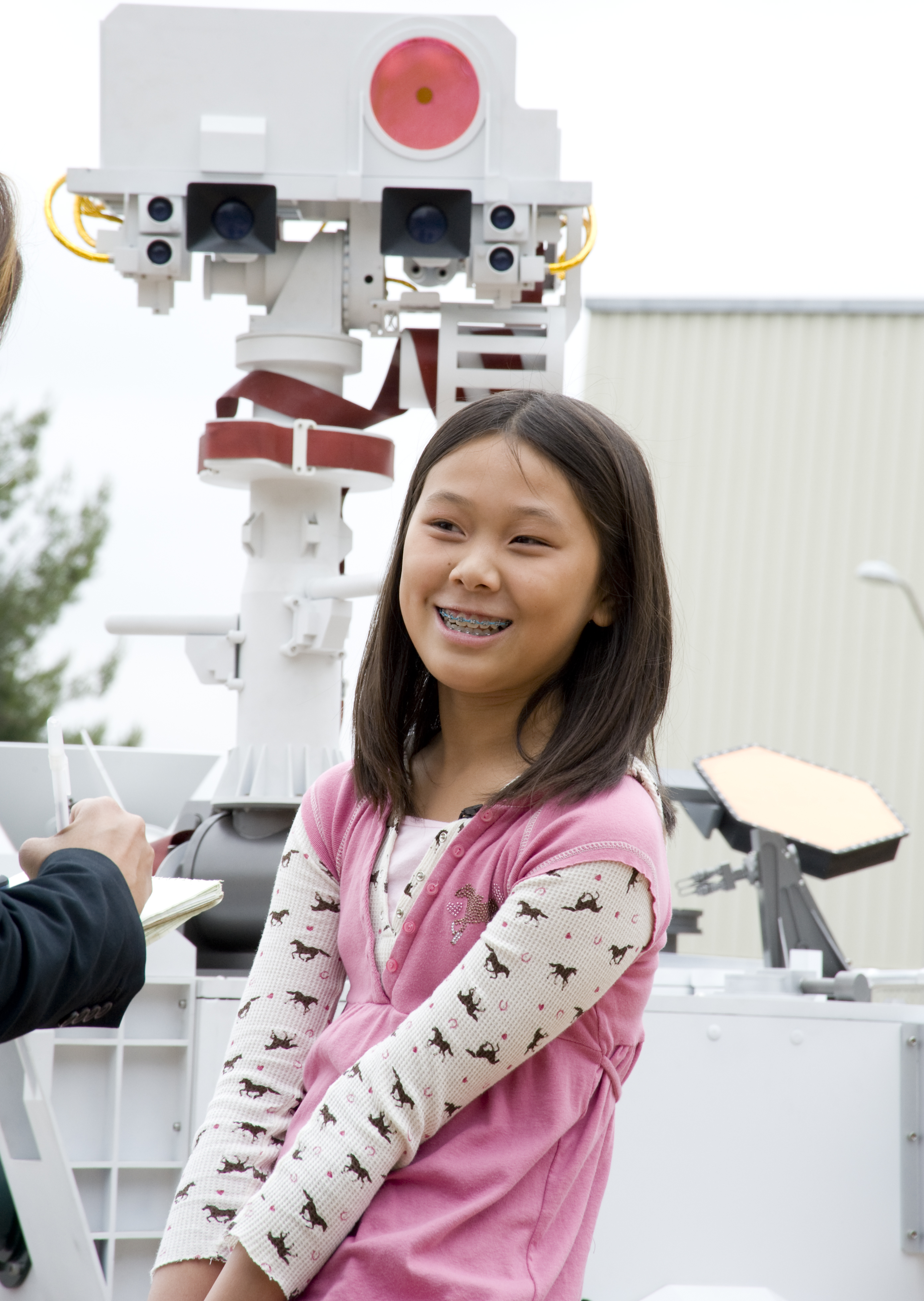 Clara Ma, winner of the contest to name NASA's Curiosity rover, in 2009 with an engineering model of the rover (left) and as a graduate student in 2019 (right)